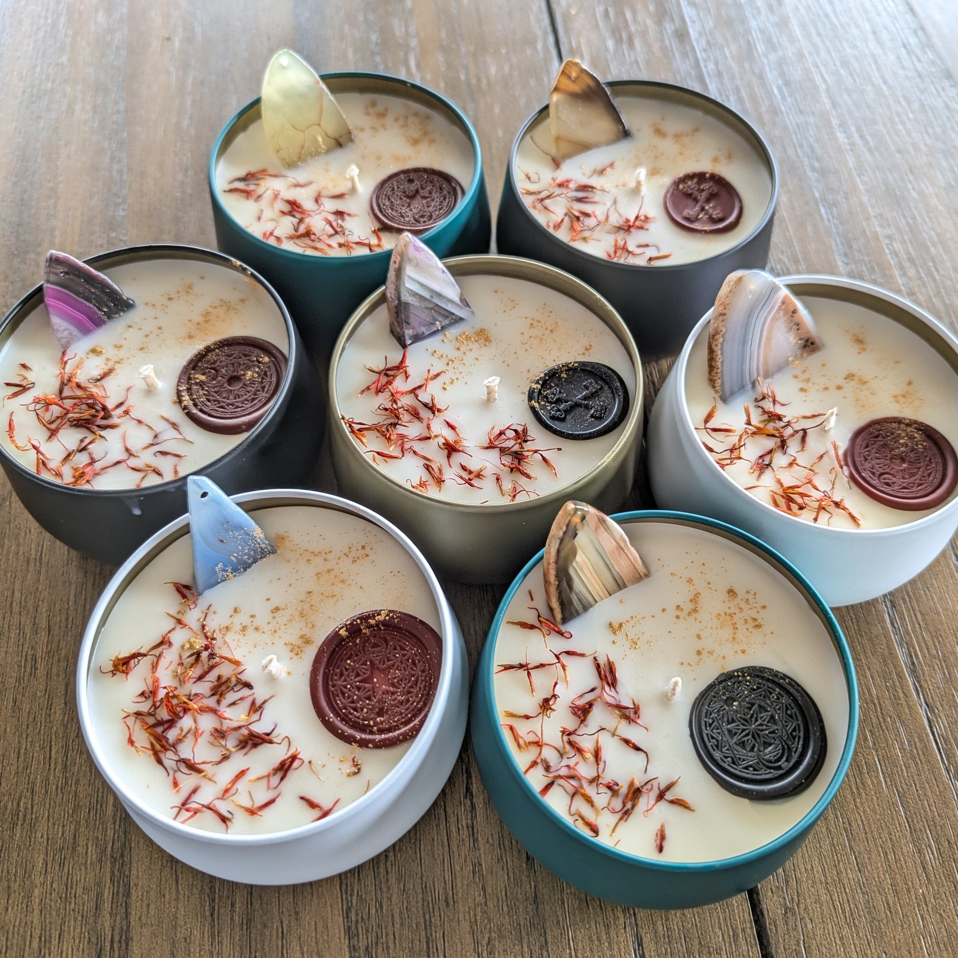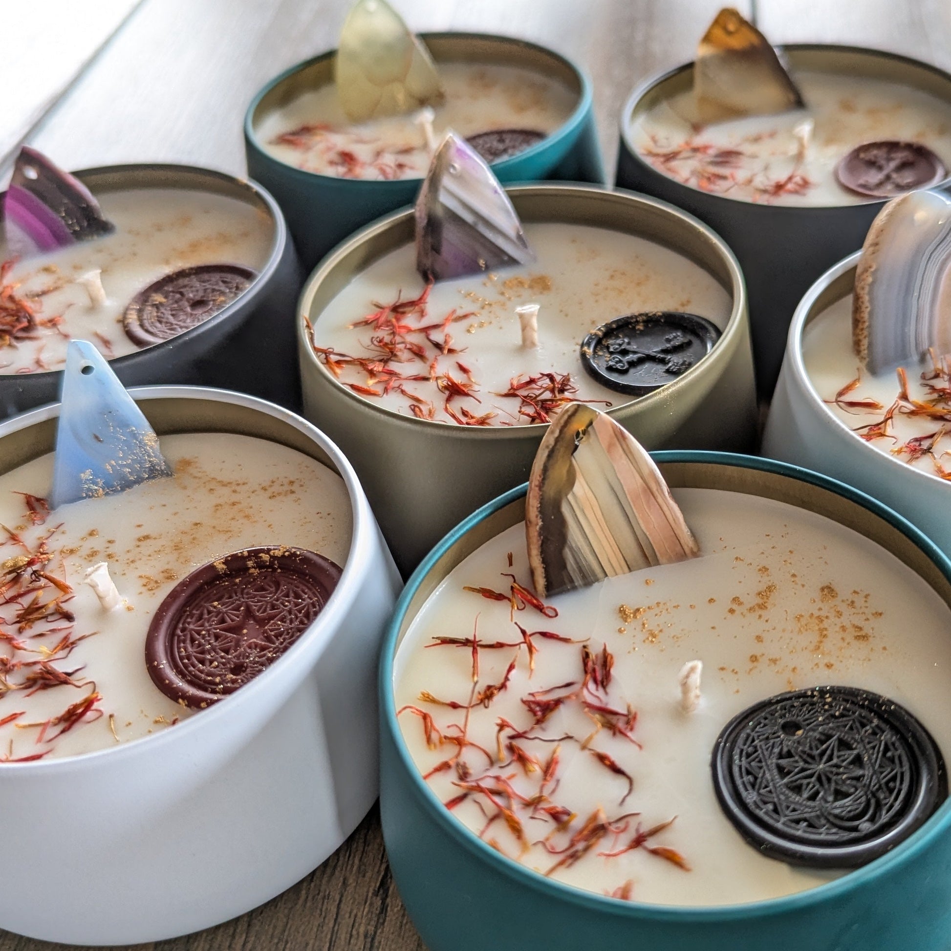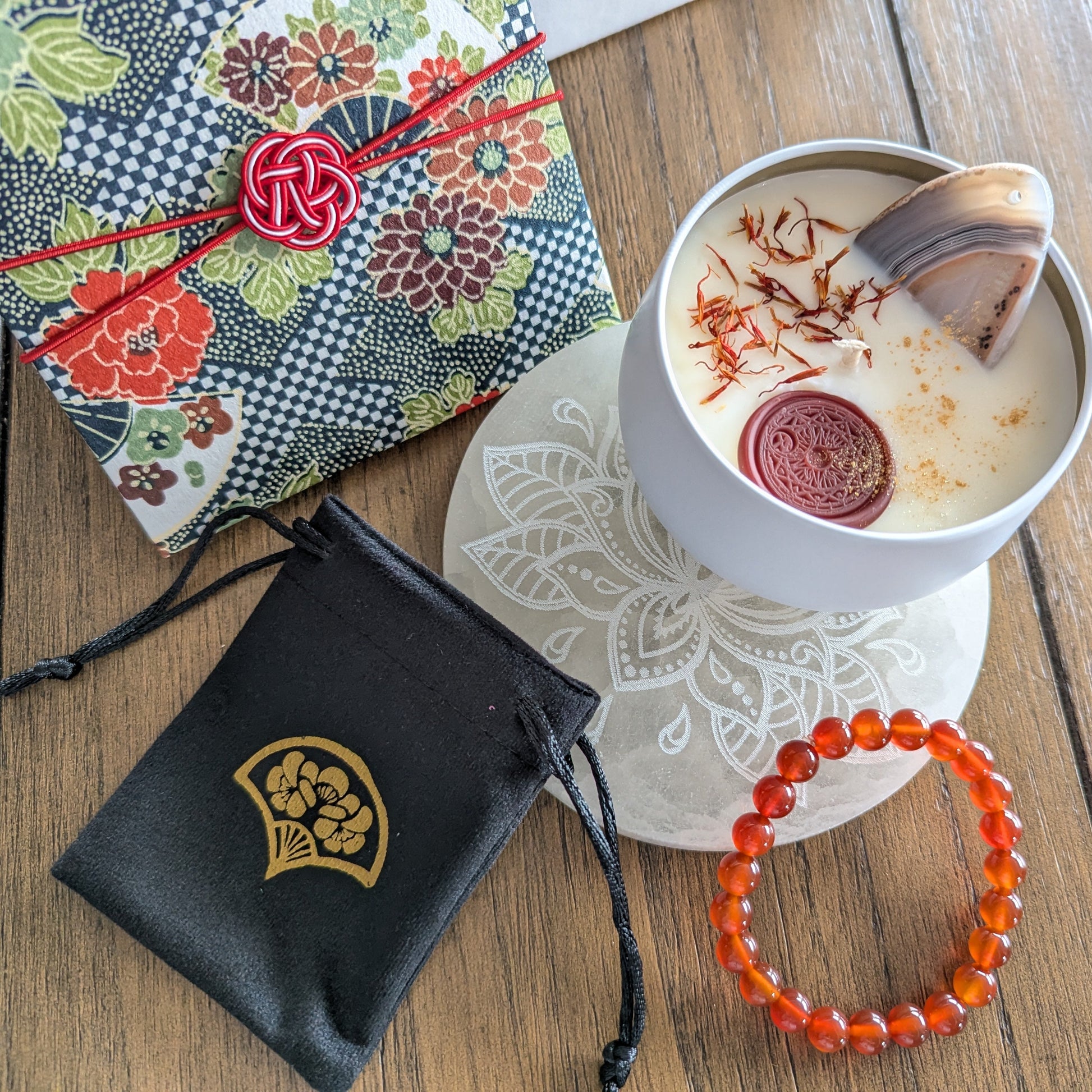 An Intention Candle with Agate Slice.